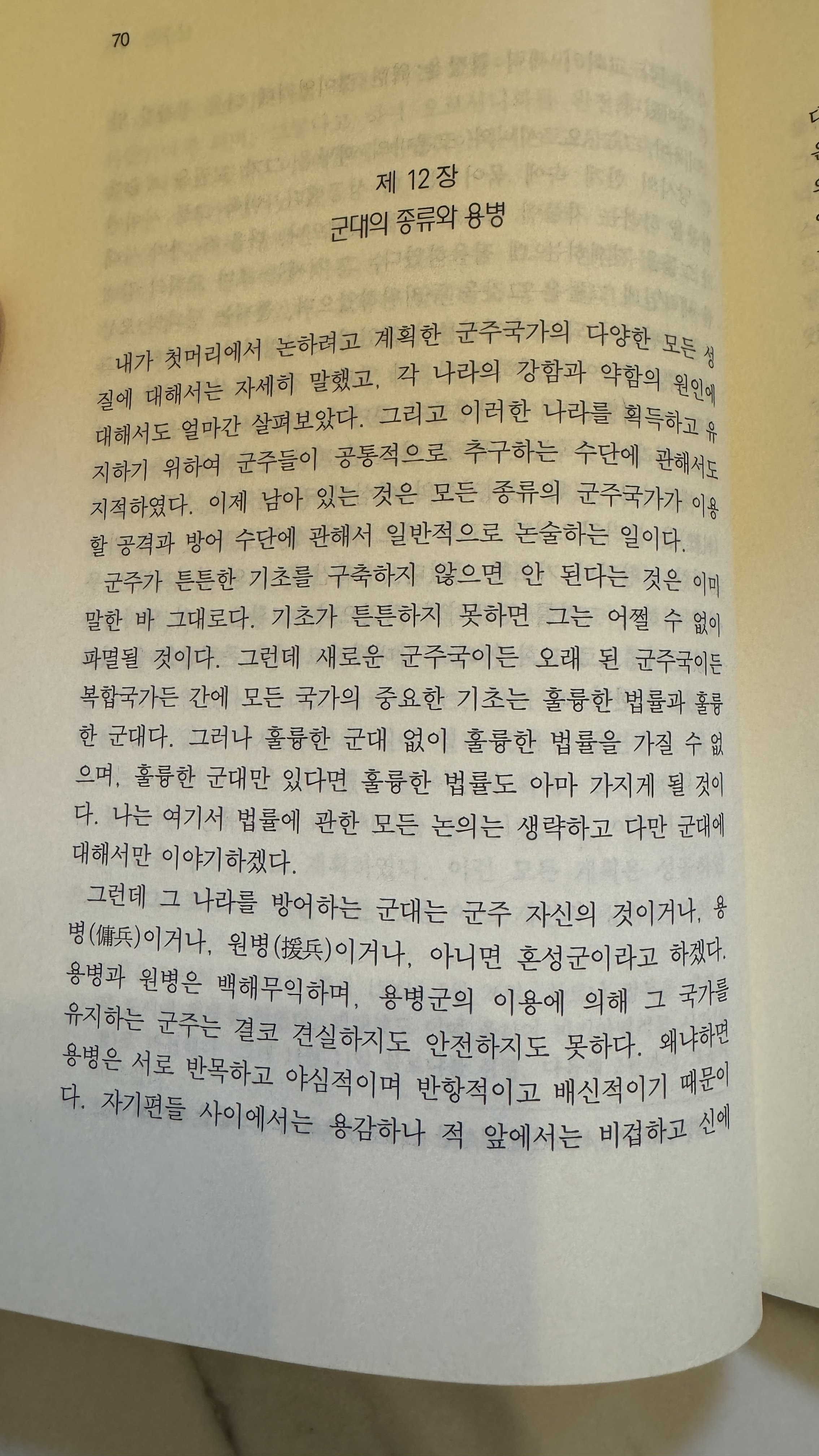 참고로 이 번역본은 <군주론>이 쓰여졌던 이탈리아어를 번역한 것이 아니라 이탈리아 원문을 영어로 번역한 책을 다시 한국어로 번역한 것이다.